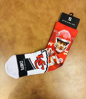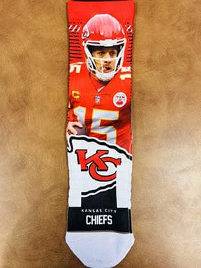 Show your pride for the Chiefs with these socks! these polyester socks feature nonother that the Chiefs star quarter back Patrick Mahomes!